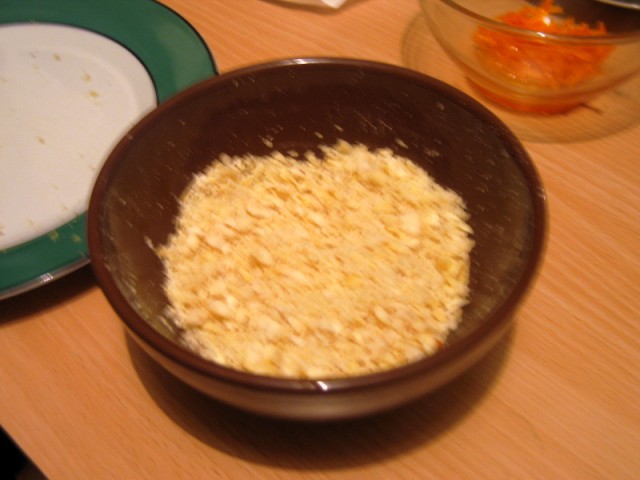 Kamēr masa dziest, sasmalcina mandeles (es izmantoju blenderi)