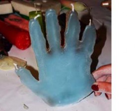 3.solis  Iespiežam smiltīs plaukstu, lai  veidotu plaukstas formas sveci.