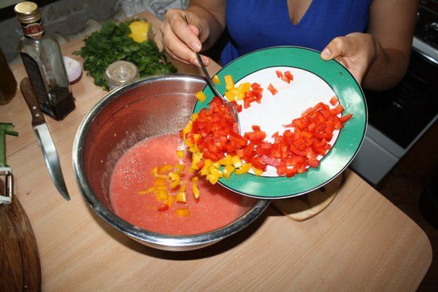Reiz gatavoju gaspačo ar spāni, kurš apgalvoja, ka gaspačo jāļauj nakti nostāvēties ledusskapī, nakamajā dienā esot īstā garša!