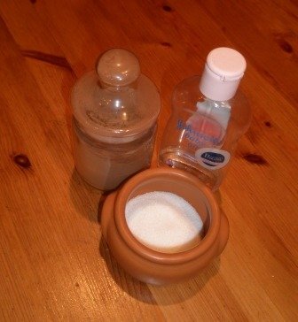 3. Maigāks skrubis ir ar cukuru. No pieredzes ieteiktu labāk Johnson eļļas neizmantot,jo tās ir minerāleļļas (nosprosto poras). Un no bērniem vispār pa gabalu turēt Johnson eļļas…:)