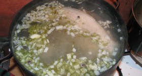 Tātad, noskalojam gaļu zem tekoša ūdens un liekam grāpī. Pārlejam ar ūdeni, pieberam sāli un uz straujas liesmas uzvāram. Tiklīdz parādās putas, visu rūpīgi nosmeļam nost.